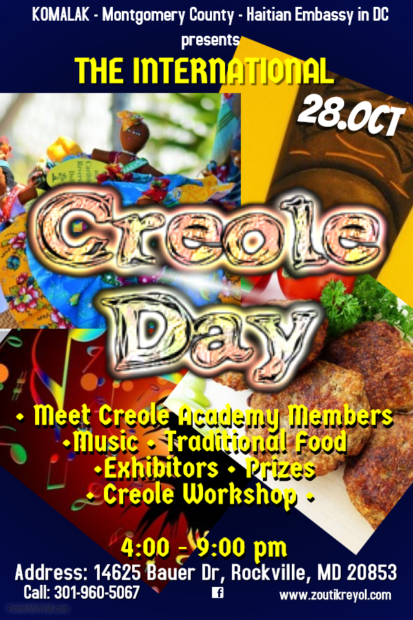 English Message In honor of International Creole Day, the Embassy of Haiti, in partnership with Komite pou Avansman Lang Kreyòl (KOMALAK) and Montgomery County, invites you to a special Creole…