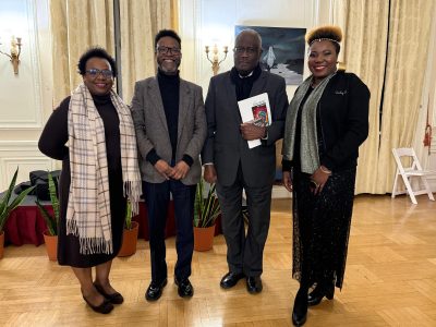 Le 5 mars 2025, l’Ambassade d’Haïti a eu l’honneur d’accueillir le célèbre guitariste et compositeur haïtien Amos Coulanges pour une causerie exceptionnelle intitulée « L’évolution de la musique haïtienne ». Devant un public composé de diplomates, d’étudiants et d’amateurs de musique, M. Coulanges a partagé avec passion son expérience personnelle et ses connaissances approfondies sur l’histoire musicale d’Haïti. Il a retracé son parcours de guitariste classique à chansonnier et a évoqué les influences qui ont façonné la musique haïtienne au fil du temps. Cet échange enrichissant a permis au public de découvrir ou redécouvrir les sonorités traditionnelles d’Haïti, tout en soulignant l’apport du pays à la diversité de la Francophonie musicale.